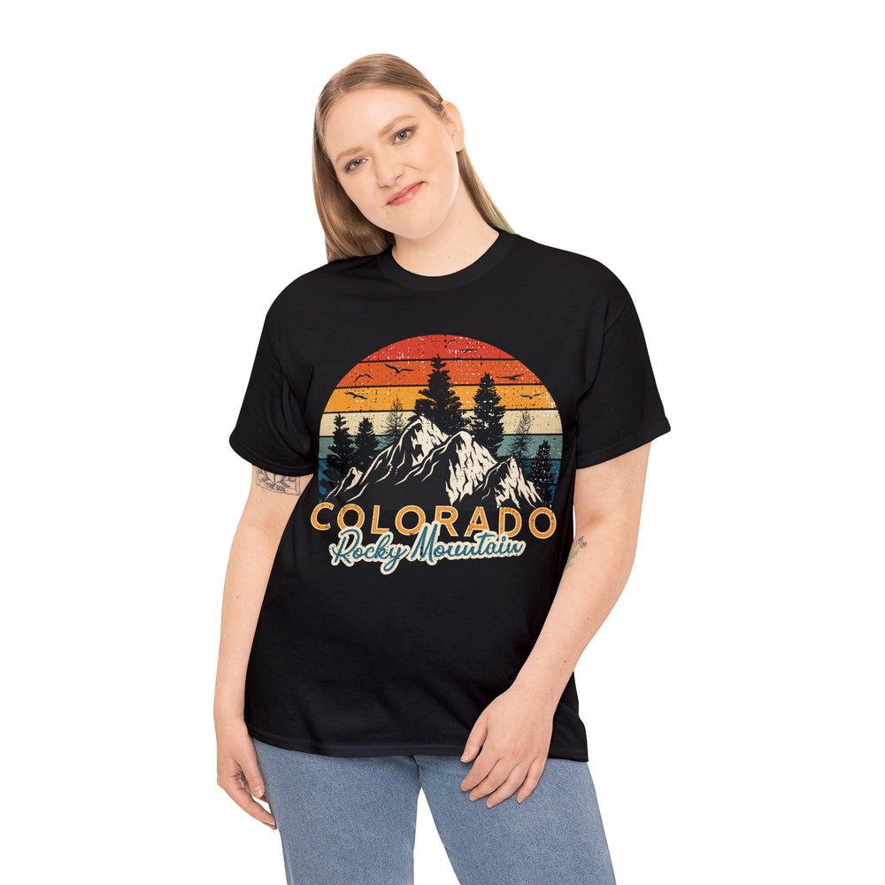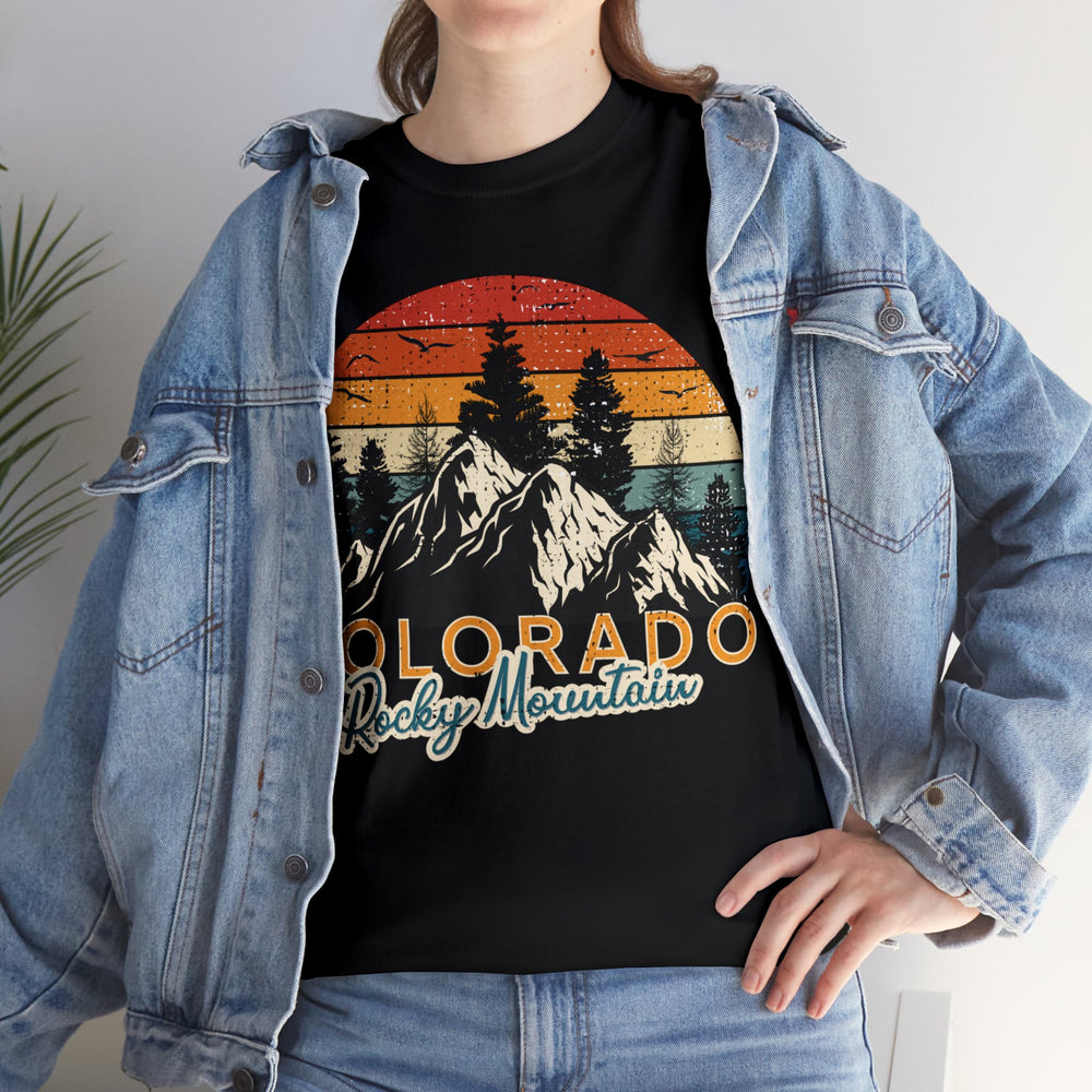 This Colorado Tee Shirt is a great gift idea for residents, tourists and visitors of this beautiful state. Featuring sunset and distressed vintage retro mountain silhouette with typography lettering.