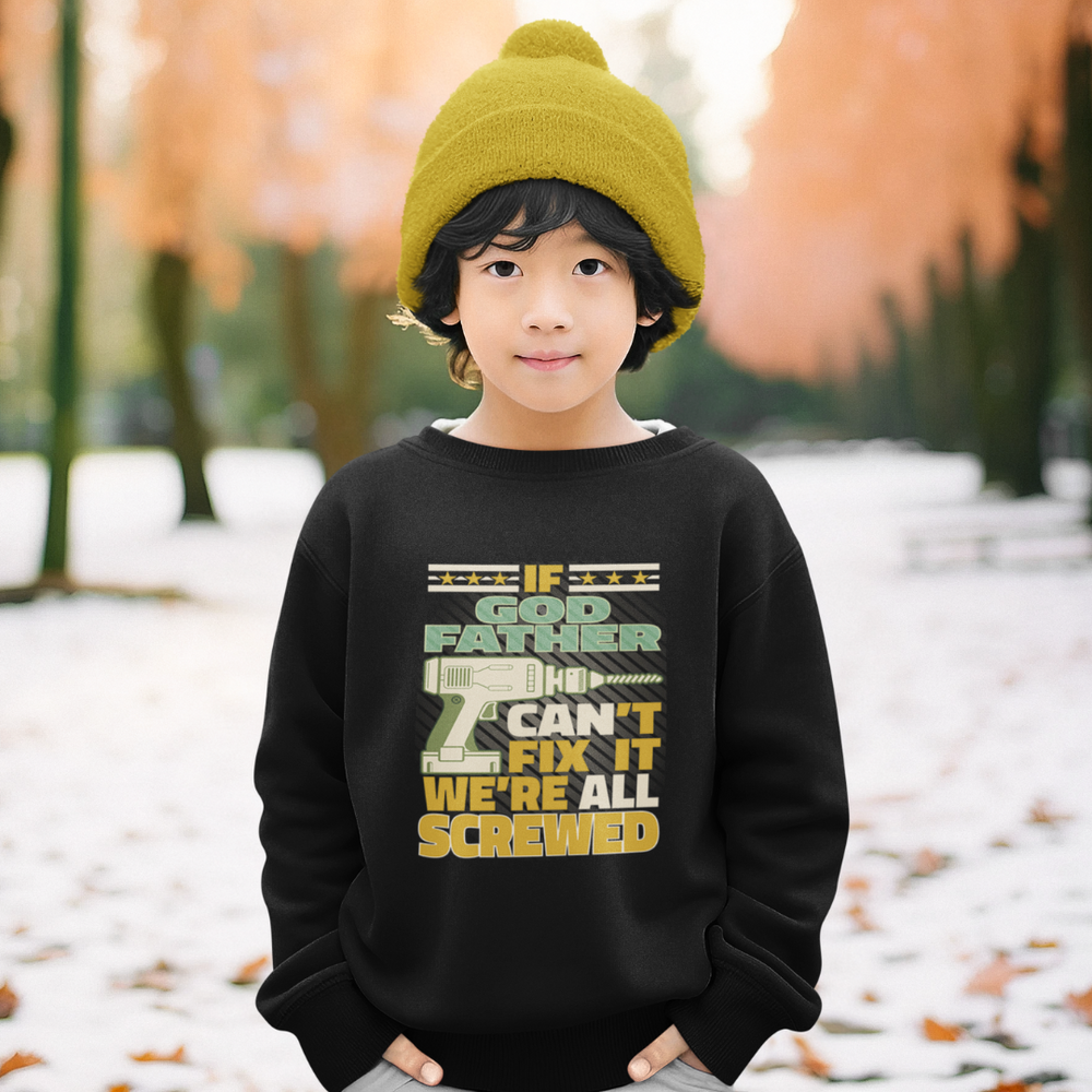 Introducing our "If Father Can't Fix It, We're All Screwed" Crewneck Sweatshirt – the perfect blend of humor and practicality. This cozy sweatshirt is a playful nod to the legendary fix-it skills of dads everywhere. Crafted with comfort in mind, it features a classic crewneck design and premium fabric for warmth and durability. Whether you're looking for a unique gift for Dad or a witty addition to your own wardrobe, this sweatshirt is sure to bring smiles and laughter. Embrace the lighthearted spirit of problem-solving dads with this must-have garment that blends style with a touch of family humor.