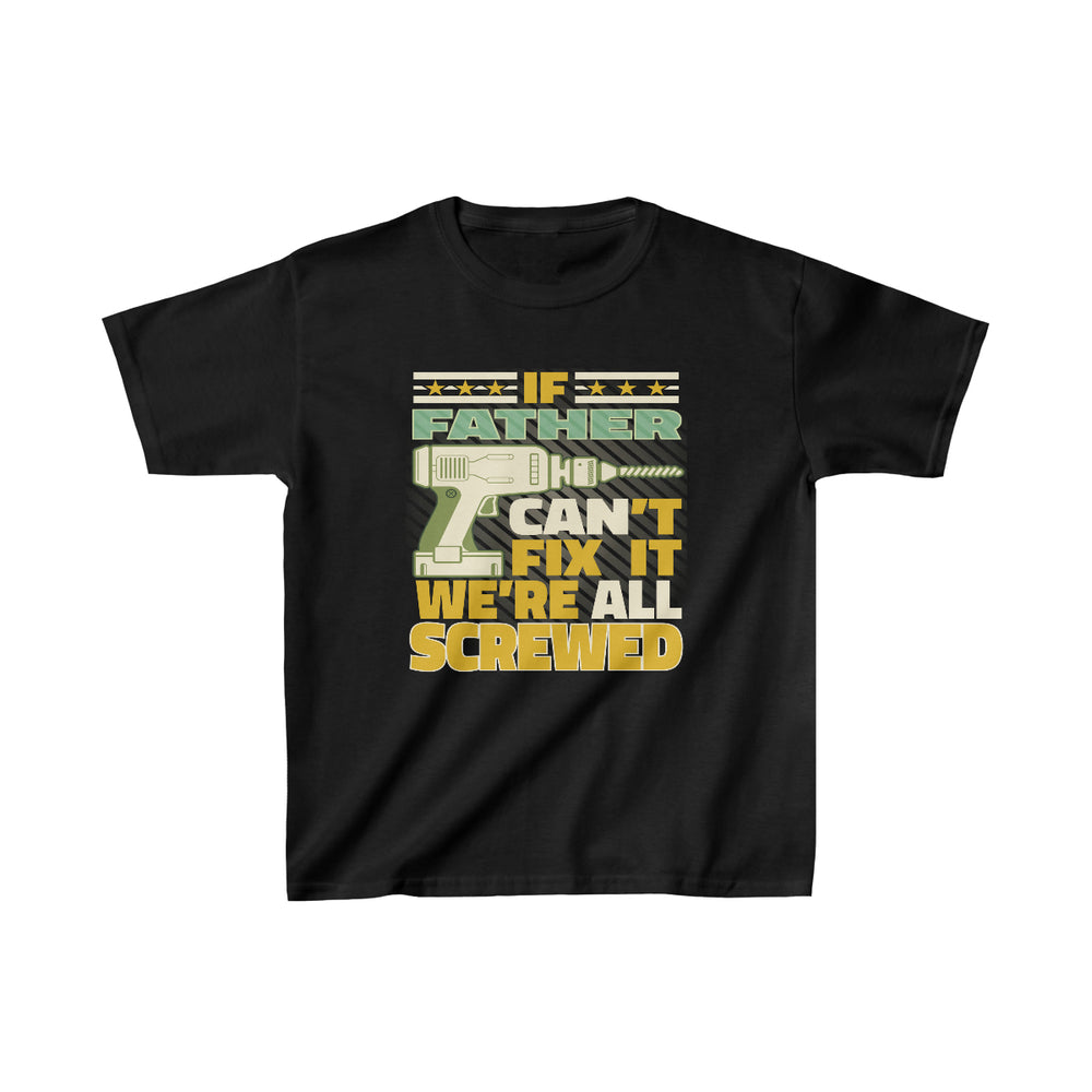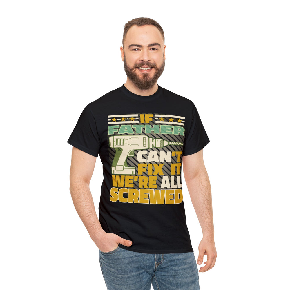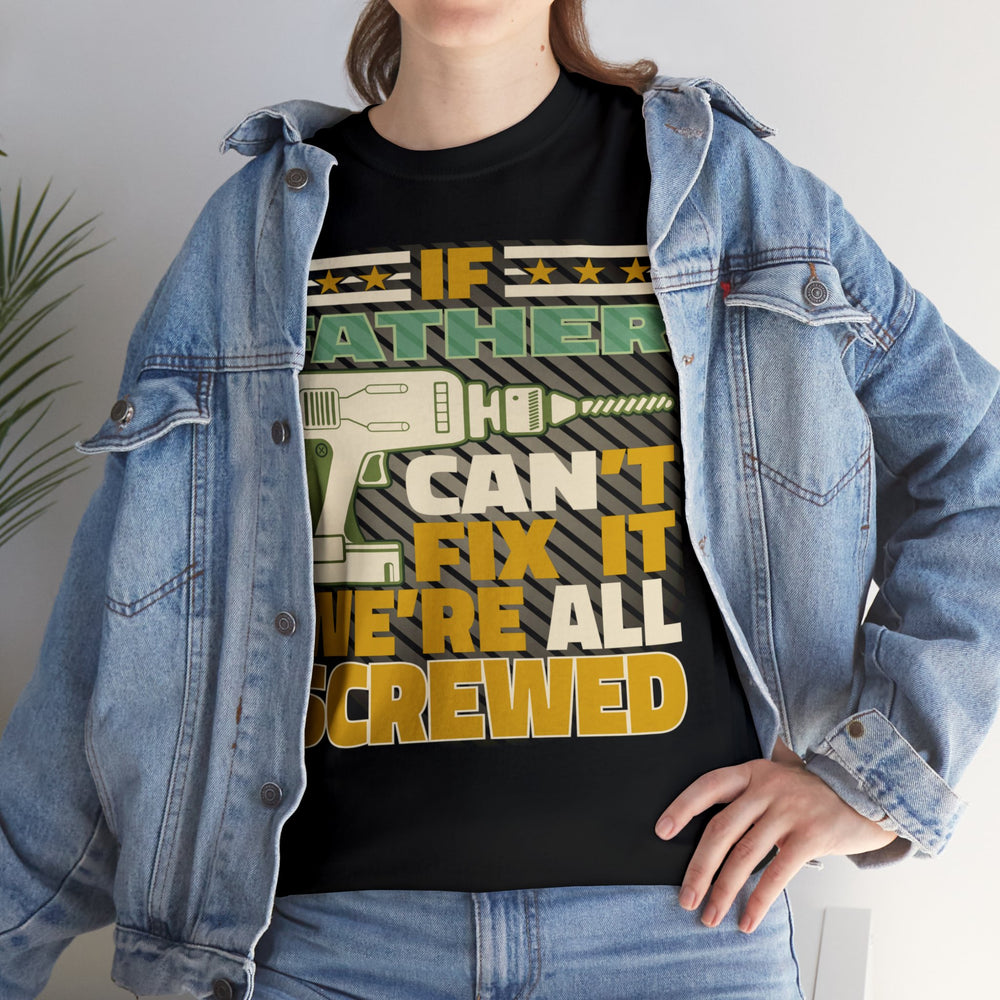 This funny t-shirt is the perfect way to show your appreciation for your dad's handyman skills. It features a bold and eye-catching design with the words "If Father Can't Fix It, We're All Screwed" in large. This witty tagline suggests that your dad's toolbox is a magical place where any repair or DIY project is possible.
