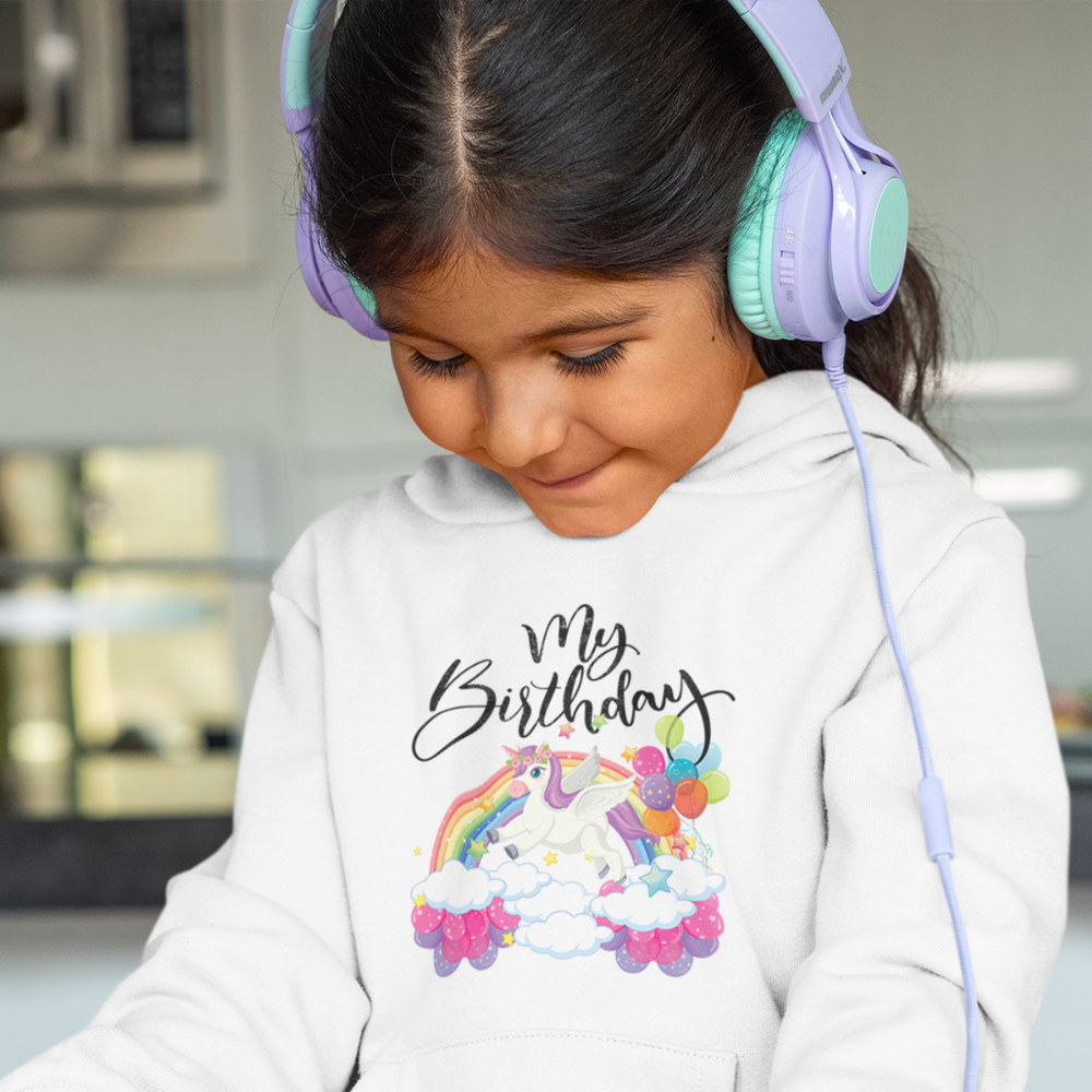 Indulge in the enchanting nostalgia of your childhood dreams with our Birthday Retro Unicorn and Rainbow Hoodie. Immerse yourself in a vibrant blend of whimsical unicorns and kaleidoscopic rainbows, carefully crafted to celebrate the magic of your special day. This cozy and stylish hoodie is not just a garment; it's a nostalgic journey back to the carefree days of youth, adorned with the timeless charm of retro aesthetics. Embrace the joy of your birthday with a touch of whimsy, warmth, and a dash of rainbow-infused nostalgia in every thread.