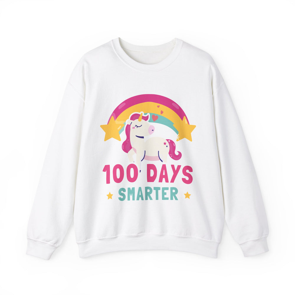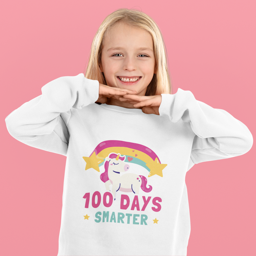 Celebrate the 100th day of school in style with our "Smarter 100th Day of School Unicorn Rainbow Crewneck Sweatshirt"! This whimsical and vibrant crewneck features an adorable unicorn surrounded by a burst of colorful rainbows, creating a fun and magical design that kids will love. Made from cozy and durable materials, it's the perfect way for little ones to showcase their achievement on this special milestone. Make the 100th day of school even more memorable with this unique and comfortable sweatshirt that adds a touch of enchantment to the celebration.