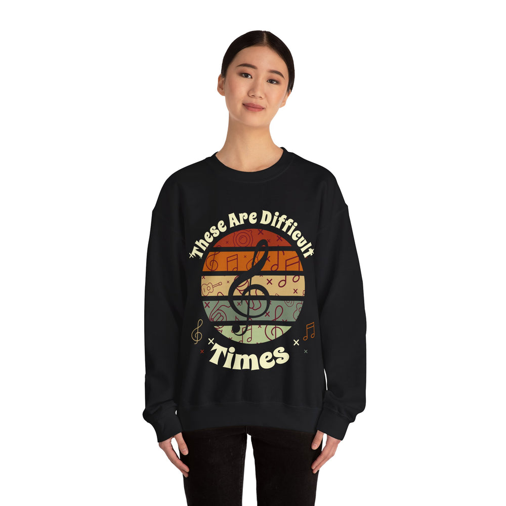 Elevate your comfort and style with our "These Are Difficult Times Music Lover Gifts Crewneck Sweatshirt." Embrace the cozy warmth of this premium crewneck sweatshirt, adorned with a unique design that celebrates the resilience of music lovers during challenging times. Crafted for both comfort and fashion, this sweatshirt is the perfect gift for those who find solace and joy in music. Wrap yourself or a loved one in the embrace of soft, high-quality fabric and make a statement that music is a source of strength and inspiration. Embody the spirit of perseverance and passion with this exclusive sweatshirt that speaks volumes without saying a word.